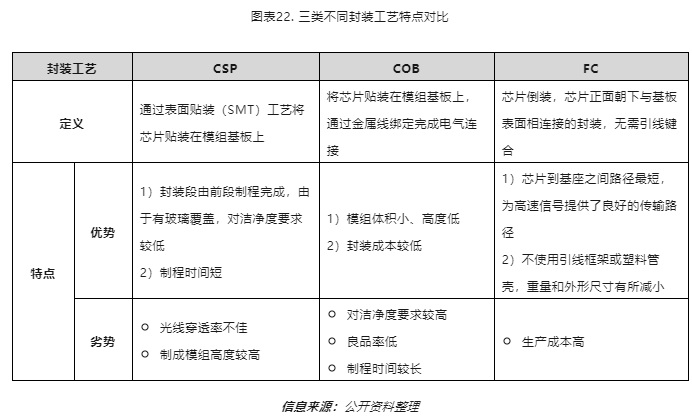 隨著車(chē)載攝像頭模組不斷地向高清化、小型化趨勢(shì)發(fā)展,車(chē)攝像頭模組封裝工藝也在逐步升級(jí)。目前,車(chē)載攝像頭模組還是以CSP封裝模式為主,即通過(guò)表面貼裝(SMT)工藝將芯片貼裝在模組基板上。綜合技術(shù)需求和成本因素的考量,對(duì)于5MP及以上的高分辨率攝像頭,車(chē)載攝像頭模組廠商會(huì)逐步采用通過(guò)金屬線綁定將芯片貼裝在模組基板上的COB封裝技術(shù)。