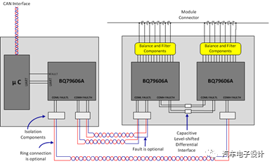 6)網(wǎng)絡(luò)通訊和喚醒電路:電池管理系統(tǒng)是需要與整車動力總成、車身網(wǎng)絡(luò)等整車網(wǎng)絡(luò)節(jié)點通信,也需要進行對應(yīng)的網(wǎng)絡(luò)管理和喚醒休眠管理。