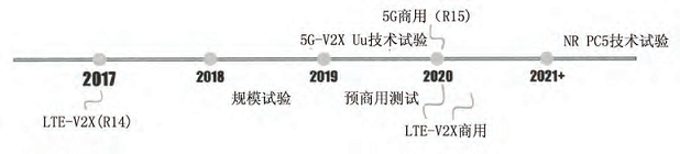 另外,目前國(guó)內(nèi)在DSRC系列技術(shù)和產(chǎn)業(yè)方面缺乏核心知識(shí)產(chǎn)權(quán)和產(chǎn)業(yè)基礎(chǔ)。而基于我國(guó)自主研發(fā)的4GTD-LTE移動(dòng)通信技術(shù)標(biāo)準(zhǔn),C-V2X技術(shù)擁有核心自主知識(shí)產(chǎn)權(quán),可以打破國(guó)外產(chǎn)業(yè)在V2X通信技術(shù)壟斷,減少在知識(shí)產(chǎn)權(quán)方面的限制。整個(gè)C-V2X預(yù)期發(fā)展的關(guān)鍵時(shí)間節(jié)點(diǎn)如圖17所示。