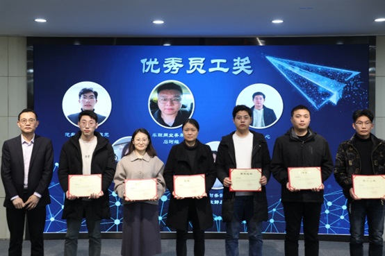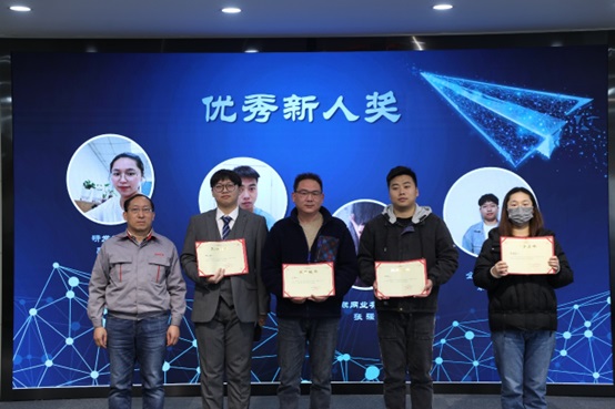 2022年度共評選出4名優(yōu)秀新人,6名優(yōu)秀員工,2個優(yōu)秀團隊,公司領導為獲獎人員頒獎。