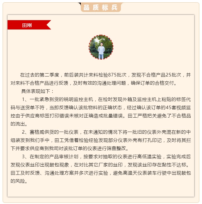2023年第二季度評(píng)優(yōu) —— 品質(zhì)標(biāo)兵